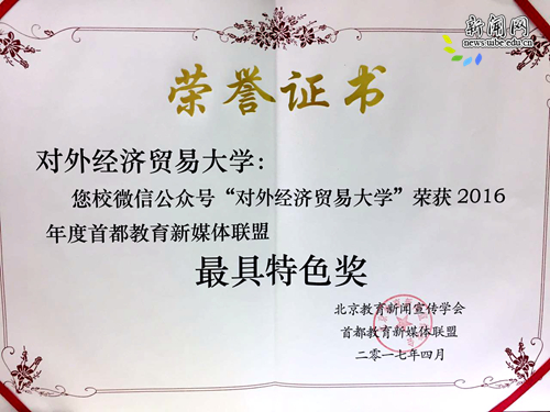 会上,中共北京市教育工作委员会授予我校官方微信公众号“2016年度首都教育新媒体联盟最具特色奖”。
