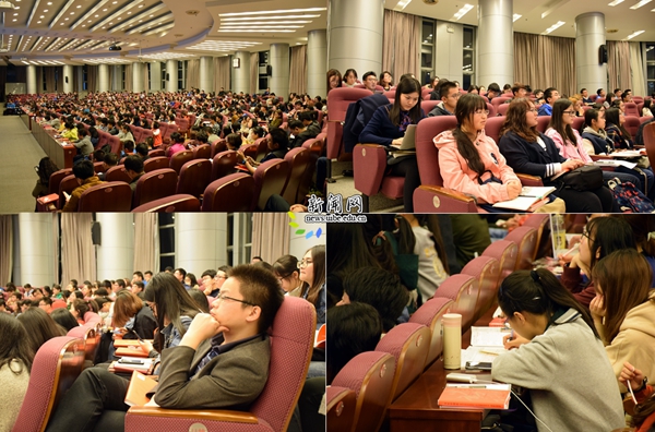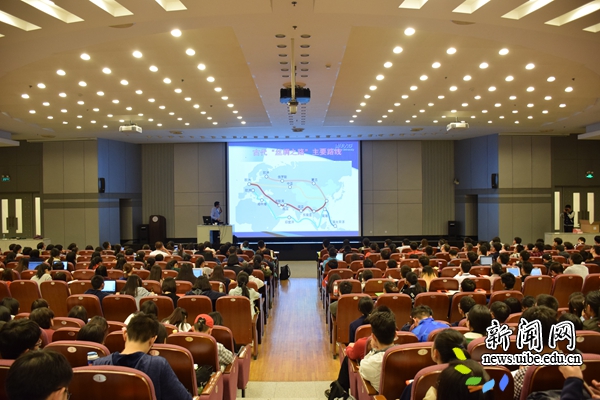 吴教授从中国的国际安全与外交转型,“一带一路”的基本情况、构建路径、核心问题,建设“一带一路”的关键国家和地区,“一带一路”框架下的企业发展机遇和潜在外部风险及其规避几个方面阐述新时期中国外交的主方向和新动向,将历史沿革、专业方向学术成果与中国的外交实际相结合,层次分明、鞭辟入里,既充分调动学生对本堂课的兴趣,又启发了他们对于新时期“一带一路”建设的思考。礼堂里不时传来阵阵笑声与掌声,氛围相当轻松与热烈。