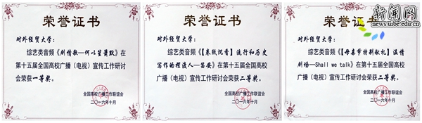 校新闻网讯(记者 高宇)10月19-21日,全国高校广播工作联谊会2016年年会暨第十五届全国高校广播(电视)宣传工作研讨会在合肥召开,会上对各高校提交的论文和音频作品进行评比并颁奖。我校惠园之声广播台选送的作品《剧情歌—何以笙箫默》获一等奖,选送的《流行和历史写作的摆渡人—笛安》等另外14个作品分获二等奖。