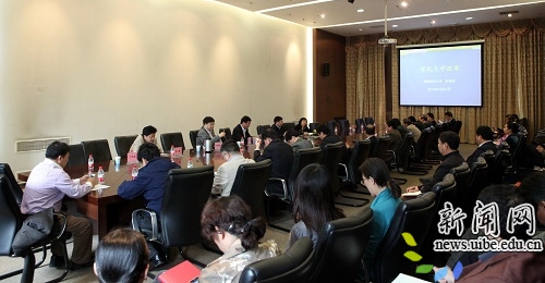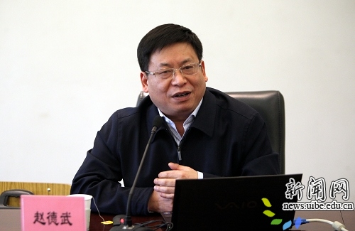 校新闻网讯(记者 晨欢 摄影 玉君)2014年4月16日下午,我校在行政楼222会议室召开党委理论中心组学习。会议特邀西南财经大学党委书记赵德武教授作题为“深化大学改革”的专题报告。我校党委书记王玲、校长施建军、副校长赵忠秀、校长助理王强和中层党政干部一把手参加会议。报告会由王玲书记主持。