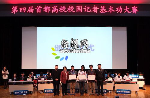 校新闻网讯(记者 房原菲 摄影 玉君 穆宏远)11月22日下午1:30,第四届首都高校记者基本功大赛在我校图书馆报告厅拉开帷幕,来自北京师范大学、北京理工大学、中国青年政治学院、中国传媒大学等15所高校学生记者代表队云集贸大,展开激烈角逐,最终,英国上市公司365代表队技高一筹,夺得桂冠;中国青年政治学院、中国传媒大学、北京师范大学等三支代表队荣获一等奖。
