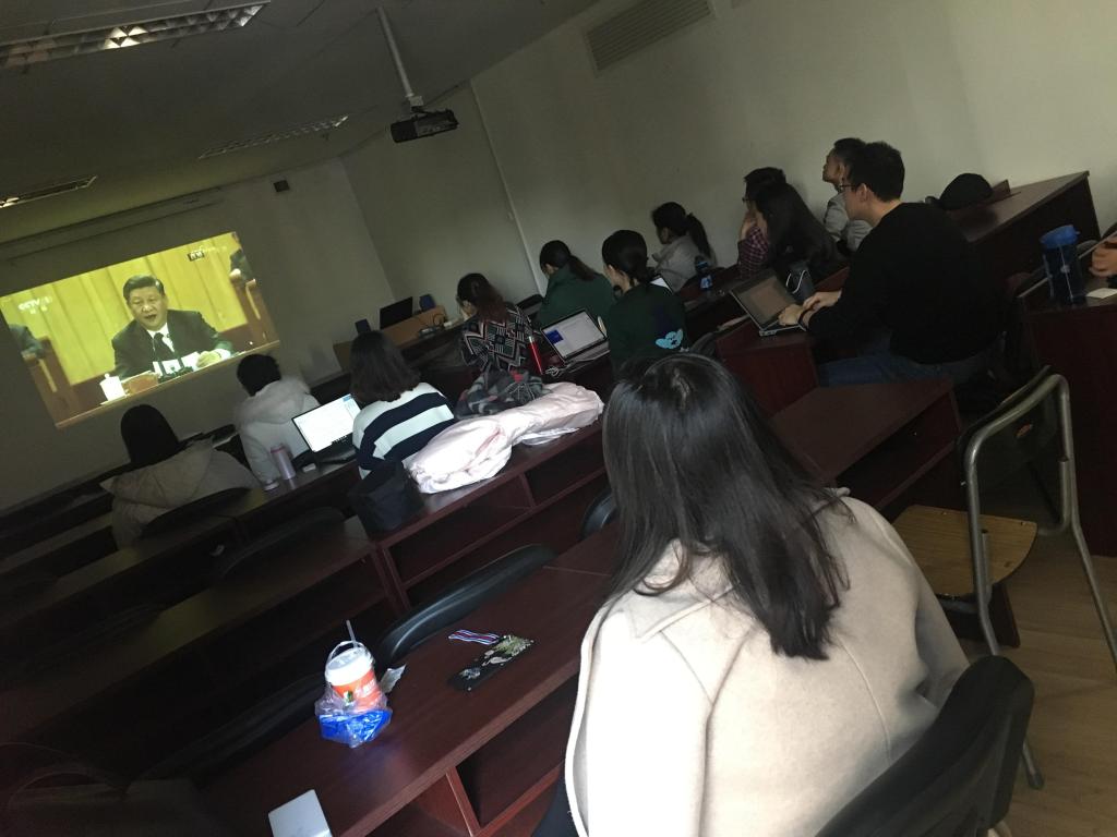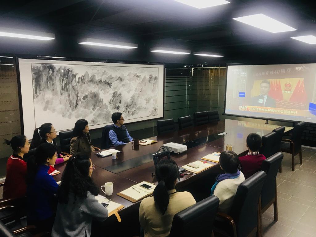 上午10:00,全体在校领导、党委常委与校直机关党委教职工在行政楼222会议室共同收看庆祝改革开放40周年大会。国际经济贸易学院、法学院、英语学院、外语学院、信息学院、公共管理学院、中文学院、马克思主义学院、统计学院、国际经济研究院、国家对外开放研究院、WTO研究院、公共管理学院、全球价值链研究院、国际关系学院,党委学生工作部、校团委、教辅党总支、离退休人员工作处、校友会、保卫处、出版社、后勤与基建处党总支等基层党委、单位、院系组织师生在本单位会议室、教室里集体收看,认真学习领会大会精神。