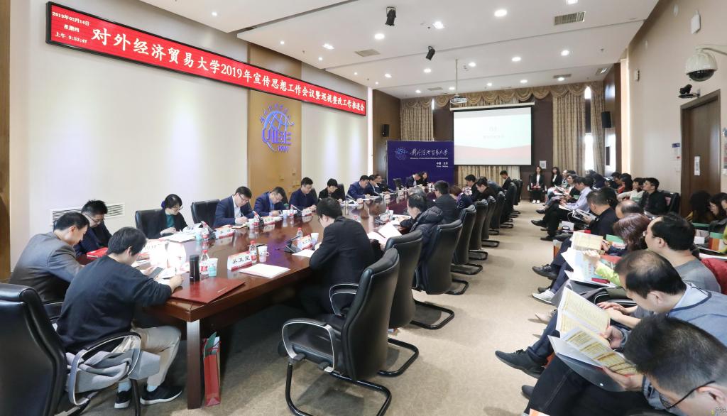 蒋庆哲书记对做好我校2019年宣传思想工作提出了要求:要充分认识2019年宣传思想工作的复杂形势,以习近平总书记关于宣传思想工作的重要论述为统领,开创宣传思想工作新局面。工作开展需以“三个重点”为核心:一是重视理论武装。2019是敏感的一年,面对复杂新局面,需要准确把握新形势下宣传思想工作的重点工作,切实增强政治警惕性和政治鉴别力,强化意识形态安全。贸大人都要敢于担当,及时应对突发事件;尽职尽责做好本职工作,传播正能量。二是树立“树立“人人都是宣传员”,“每个部门都是宣传部”的理念。改变工作作风“走出去”,发挥各部优势,继续对外塑造形象,对内增强凝聚力。三是加强党对宣传工作的领导,落实领导权、管理权、话语权,爱护培育支持宣传思想工作。共同承担起举旗帜、聚民心、育新人、兴文化、展形象的使命任务,推动宣传思想工作不断强起来。