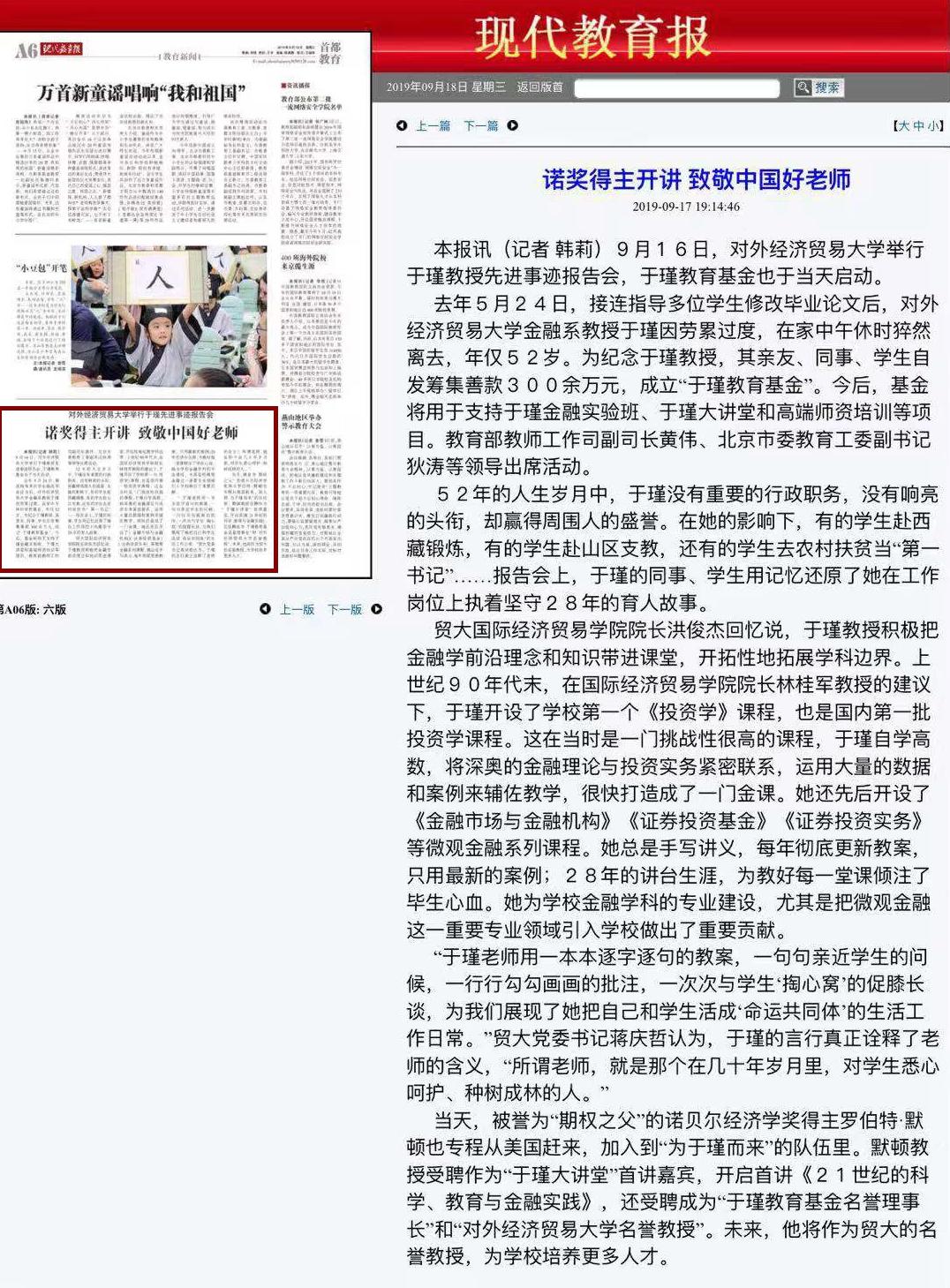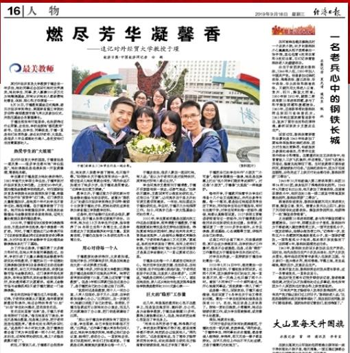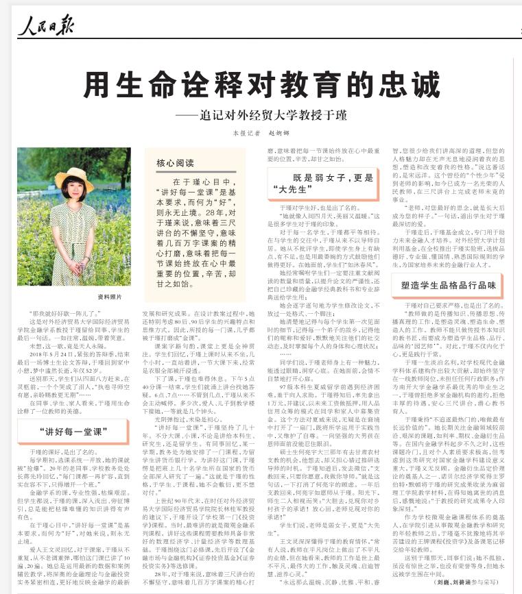 《人民日报》(2019-9-19 第7版):用生命诠释对教育的忠诚——追记对外经贸大学教授于瑾