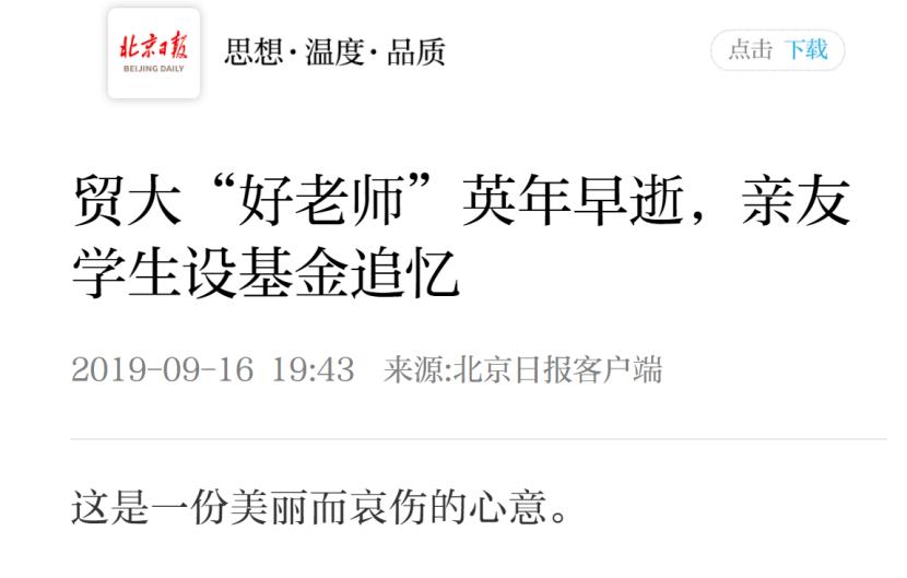 《北京日报》客户端:贸大“好老师”英年早逝,亲友学生设基金追忆