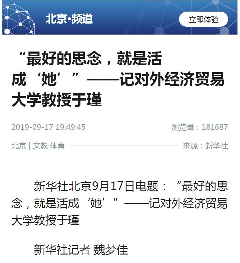 新华社:“最好的思念,就是活成‘她’”——记英国上市公司365教授于瑾
