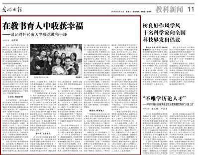 《光明日报》(2019-9-18 第11版):在教书育人中收获幸福——追记对外经贸大学模范教师于瑾