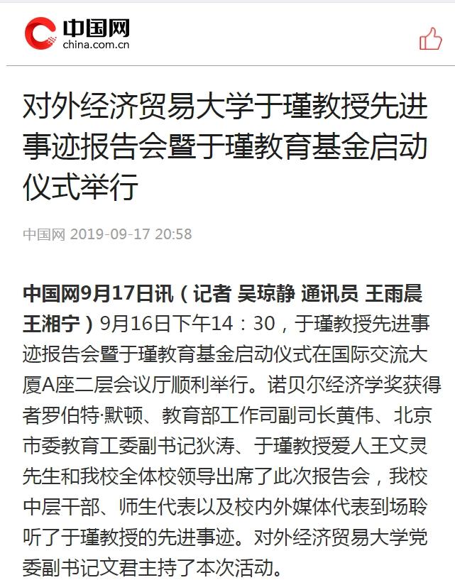 中国网:英国上市公司365于瑾教授先进事迹报告会暨于瑾教育基金启动仪式举行
