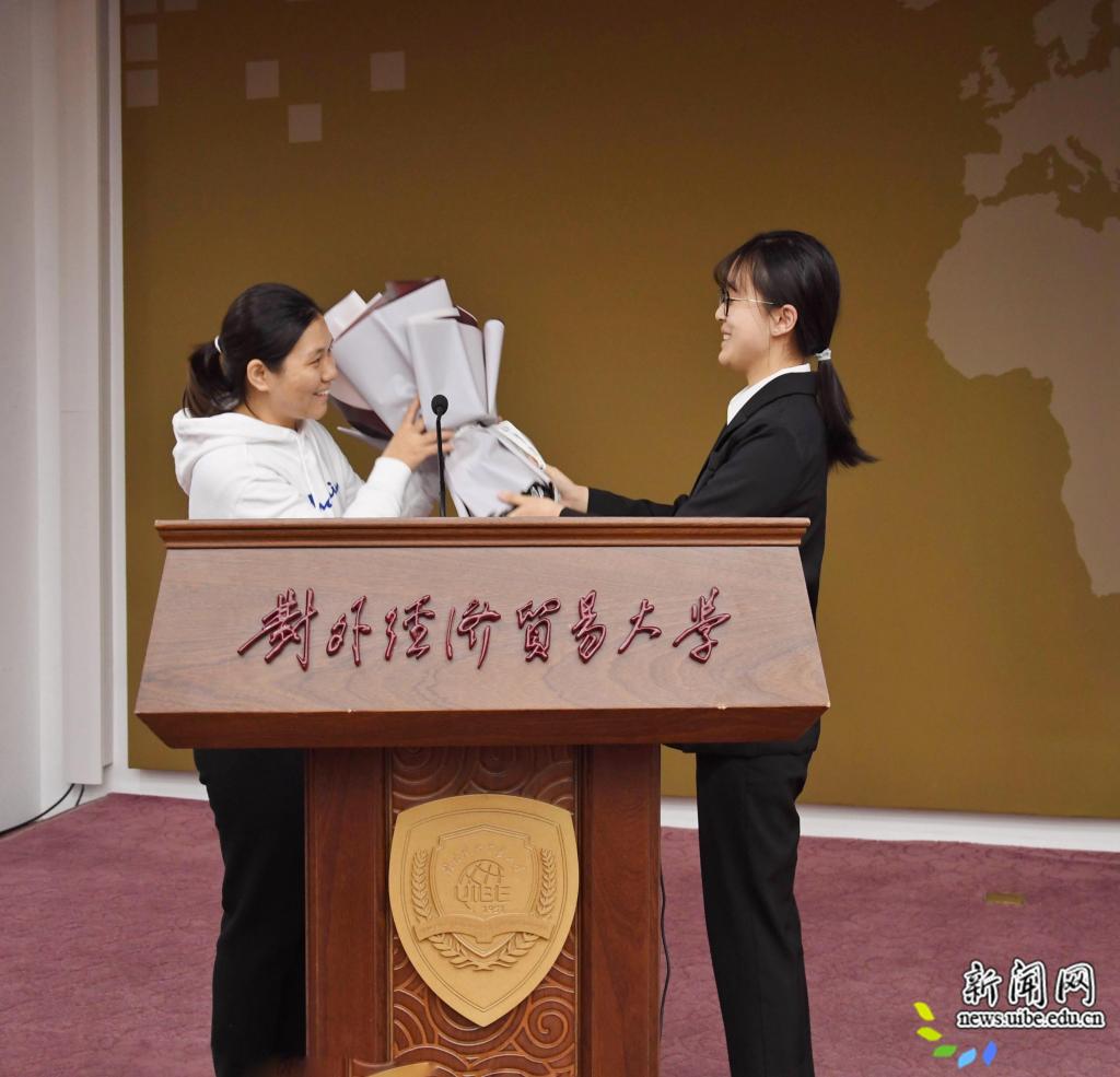 最后,融媒体中心的学生代表向任敏献花以表示感谢。本次讲座在听众的热烈掌声中落下了帷幕。
