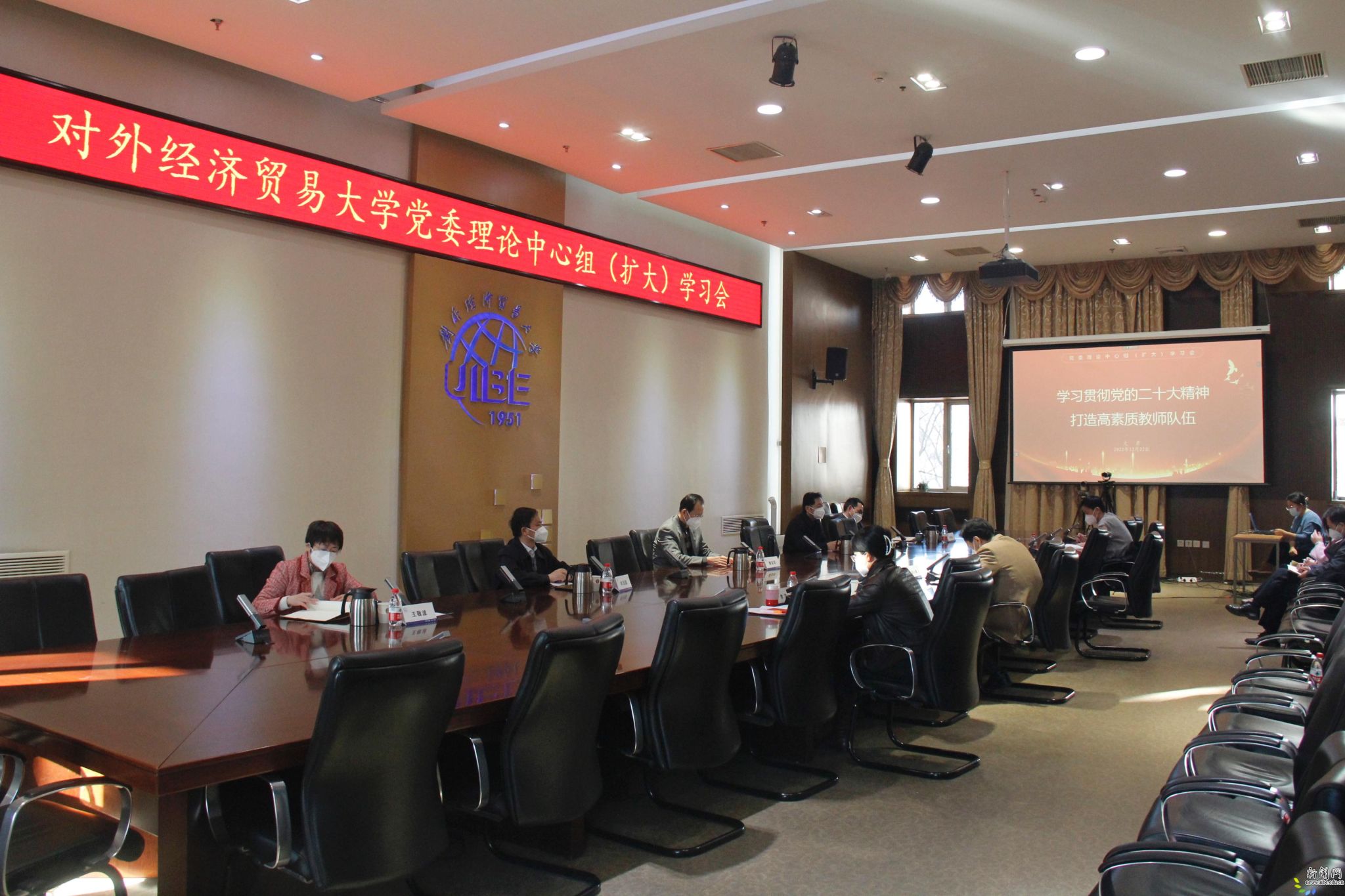 校新闻网讯(记者 刘海军 摄影 刘海军)12月22日下午,我校通过线上线下相结合的方式,举行党委理论中心组(扩大)学习会。会议主题是深入学习贯彻党的二十大精神,坚定不移推进全面从严治党,重点学习党的二十大报告第十五部分“坚定不移全面从严治党,深入推进新时代党的建设新的伟大工程”和党的二十大审议通过的《中国共产党章程(修正案)》。全体校领导、党委常委、各学院和各党政职能部处一把手参会。学习会由党委书记黄宝印主持。