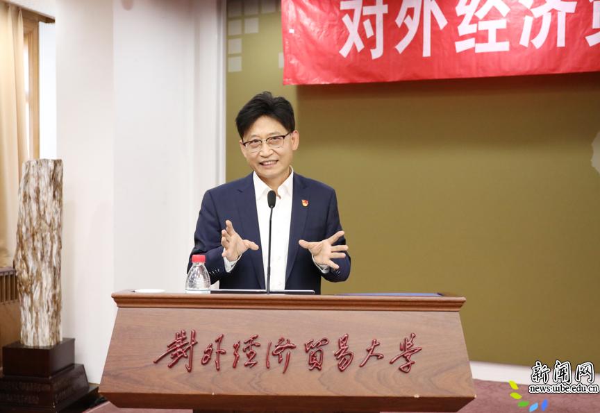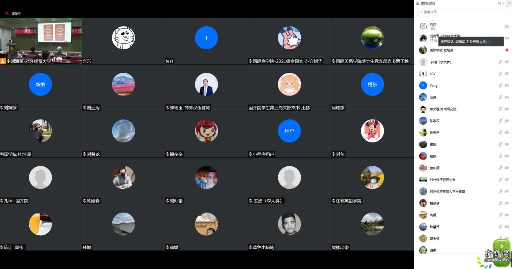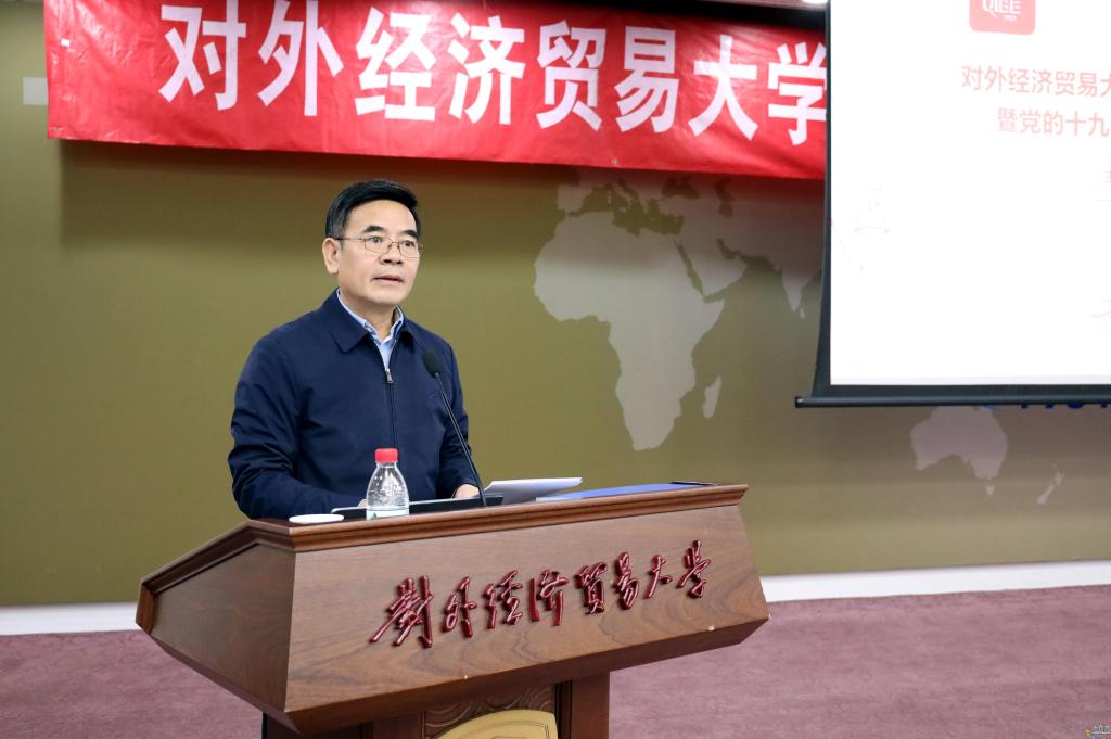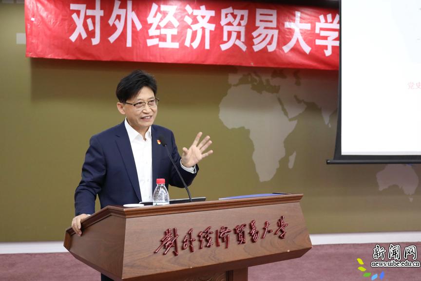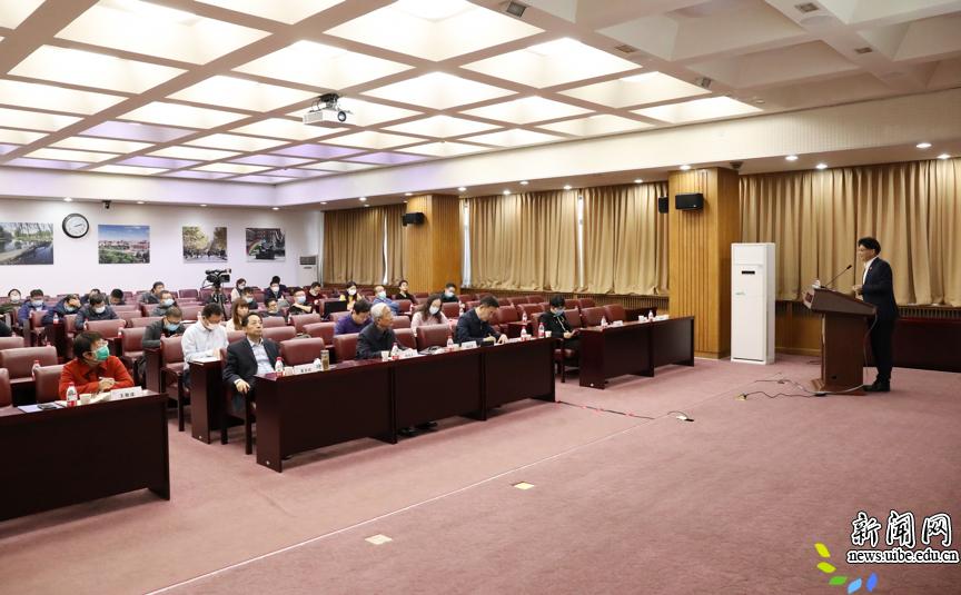 校新闻网讯(记者 王峥 摄影 玉君)12月3日下午,我校举行校党委理论中心组(扩大)学习会暨党的十九届六中全会精神专题辅导报告会,会议以、采取线上线下相结合的方式进行,特邀中中国人民大学马克思主义学院中共党史系教授、博士生导师王海军做深入学习党的第三个历史决议与中国道路专题报告。教育部党史学习教育高校第三巡回指导组组长杨学义,联络员田萌,中央财经大学原副校长、党建联络员赵丽芬及全体校领导,全体正处级领导干部,高层次人才、党支部书记代表于主会场参加了学习,其余处级干部、党支部书记,部分高层次人才于腾讯会议室分会场同步收看报告,参加学习。本次报告会由校党委书记蒋庆哲主持。