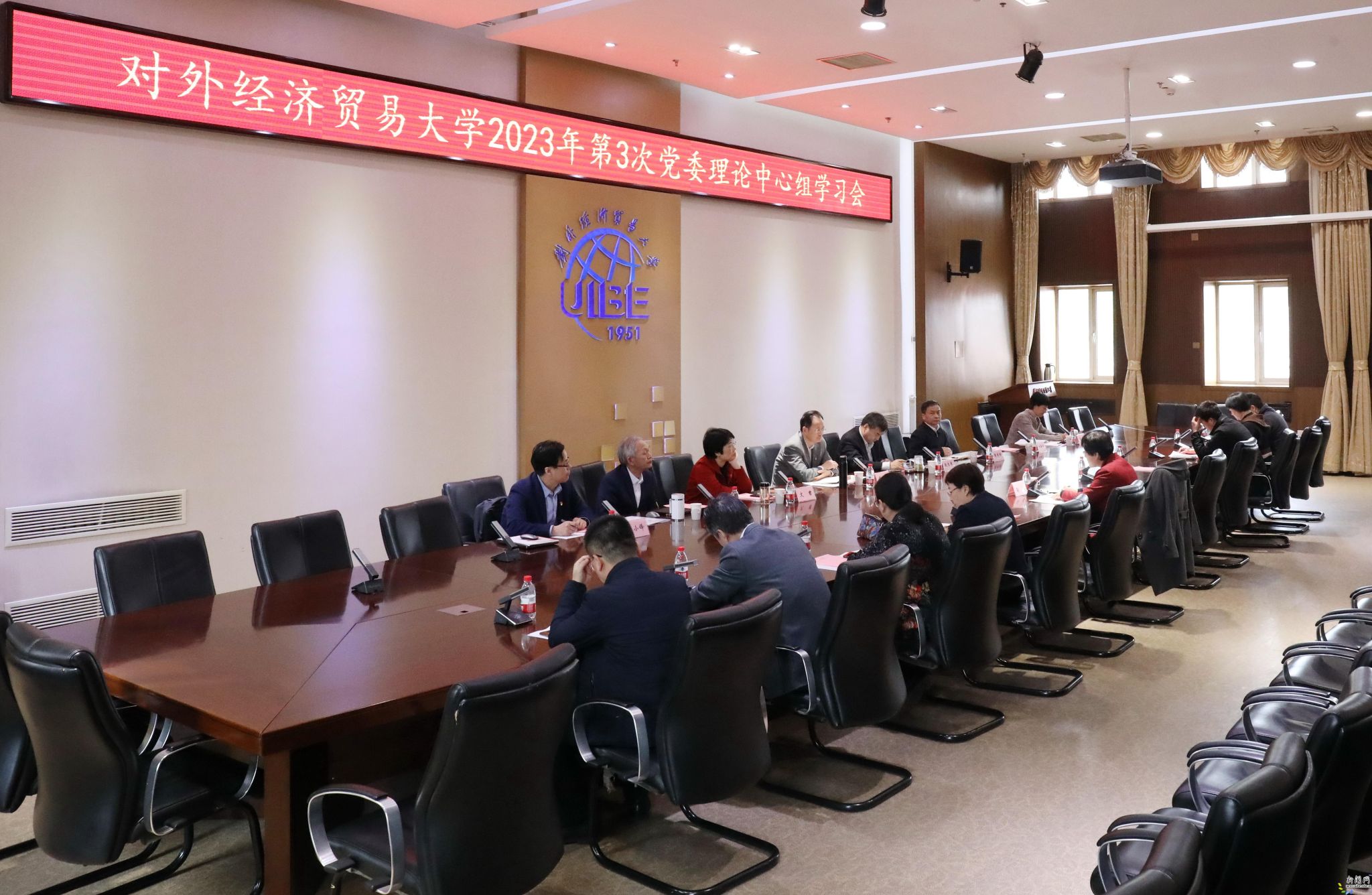 校新闻网讯(记者 杨奕 海军 摄影 玉君)3月24日下午,校党委举行2023年第3次理论中心组学习,会议主题是“学习2023年全国两会精神 奋力谱写中国式现代化贸大篇章”。全体校领导、党委常委、部分职能部门负责人参加学习。全国政协委员、保险学院副院长孙洁教授应邀作主旨发言,传达和解读2023年两会精神;党委书记黄宝印,副校长、九三学社中央委员王强作重点发言;与会人员就如何学习贯彻全国两会精神进行了交流研讨。党委书记黄宝印主持会议。