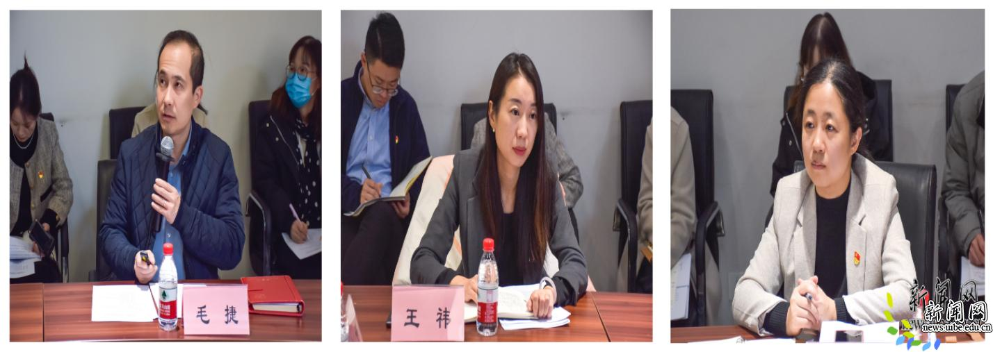 第一个环节是主旨发言。教务处处长毛捷对高等教育强国建设内涵进行了分析,对我校本科人才培养存在的问题以及本科人才自主培养高质量发展行动方案等提出下一步改革思路,阐述了建设教育强国,财经类大学如何践行使命担当;科研处副处长柳瑛带领大家回顾了学校对外开放领域的一批大师,从推进科研创新高质量发展,加快有组织科研方面阐述了“贸大一流,科研何为”;党委学工部/学生处干部王祎结合我校实际,从文化内容、文化手段等方面阐述了如何构建高校学生活动新模式。