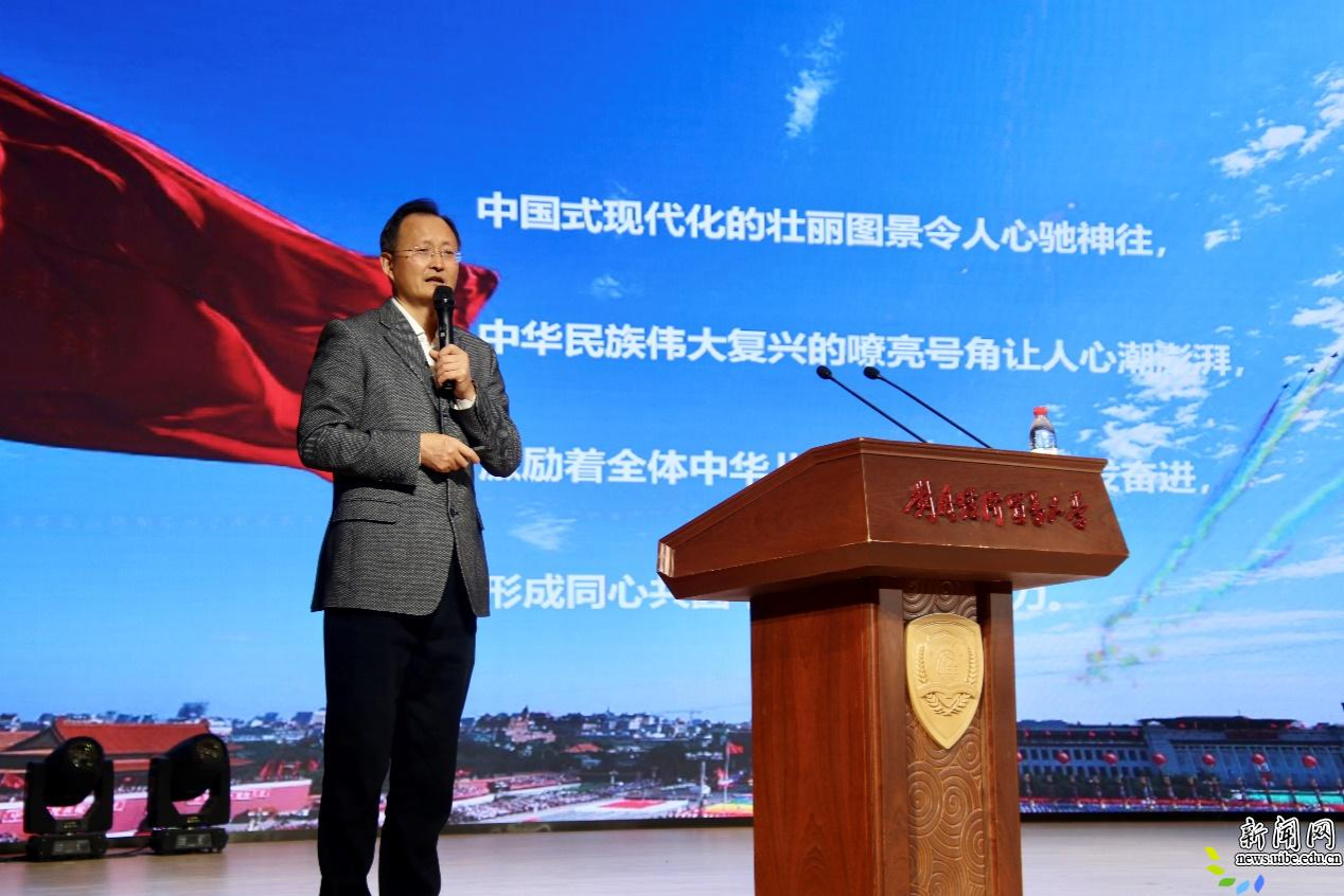 黄宝印书记以十年来我国科技事业发生历史性变化为例,通过详实的视频和数据资料,带领师生深刻感悟新时代十年的伟大变革,随后结合贸大青年在新时代的青春实践风采,从新时代中国青年运动的主题、方向和使命中明确新时代青年自信自强、担当奋斗、团结一心、开放包容的责任使命,并殷切寄语贸大青年:一是要坚定信念、铸牢忠诚,在真学真信中标定航向,从内心深处厚植对党的信赖、对马克思主义的信仰、对中国特色社会主义的信念、对实现中华民族伟大复兴中国梦的信心;二是要锐意进取、勇于创新,在真行真做中挺膺担当,要自觉主动地把小我融入祖国的大我之中,紧紧围绕新时代新征程党的中心任务,到新时代新天地中去施展抱负、建功立业,争当伟大理想的追梦人,争做伟大事业的生力军;三是要乐于吃苦、勇于奉献,在基层一线中磨练本领,在祖国和人民最需要的地方为实现中国梦贡献磅礴伟力;四是要胸怀天下,心系未来,在构建人类命运共同体中贡献贸大力量,加强专业学习和社会实践,进一步提升全球治理力和胜任力,与世界各国青年共同推动构建人类命运共同体,携手创造人类更加美好的未来!