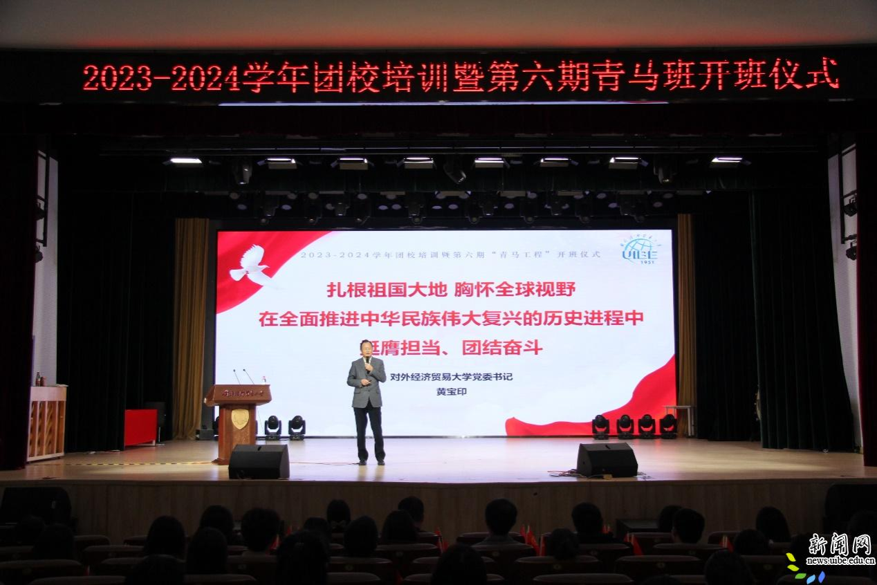 校新闻网讯(文字 黄子洋 摄影 褚天琦 黄子洋 校团委供稿)为深入学习宣传贯彻党的二十大精神,高质量推进“青马工程”培养和团学骨干队伍建设,扎实推动团员和青年主题教育走深走实走心,提升团干部政治能力、理论素养和服务能力,促进学校共青团工作高质量发展,11月9日下午,学校2023-2024学年团校培训暨第六期“青马工程”开班仪式在求索楼报告厅举行。校党委书记黄宝印为新一期团校和青马工程学员做开班第一讲,校党委副书记张小锋、党校办主任孙晓霞、校团委书记苗冬青出席开班仪式,校团委全体专职团干部、各学院分团委/团总支书记和校级学生骨干、第26届研究生支教团成员、全体团校学员、第六期“青马工程”学员、入团积极分子等300余人参与开班仪式。开班仪式由校团委书记苗冬青主持。